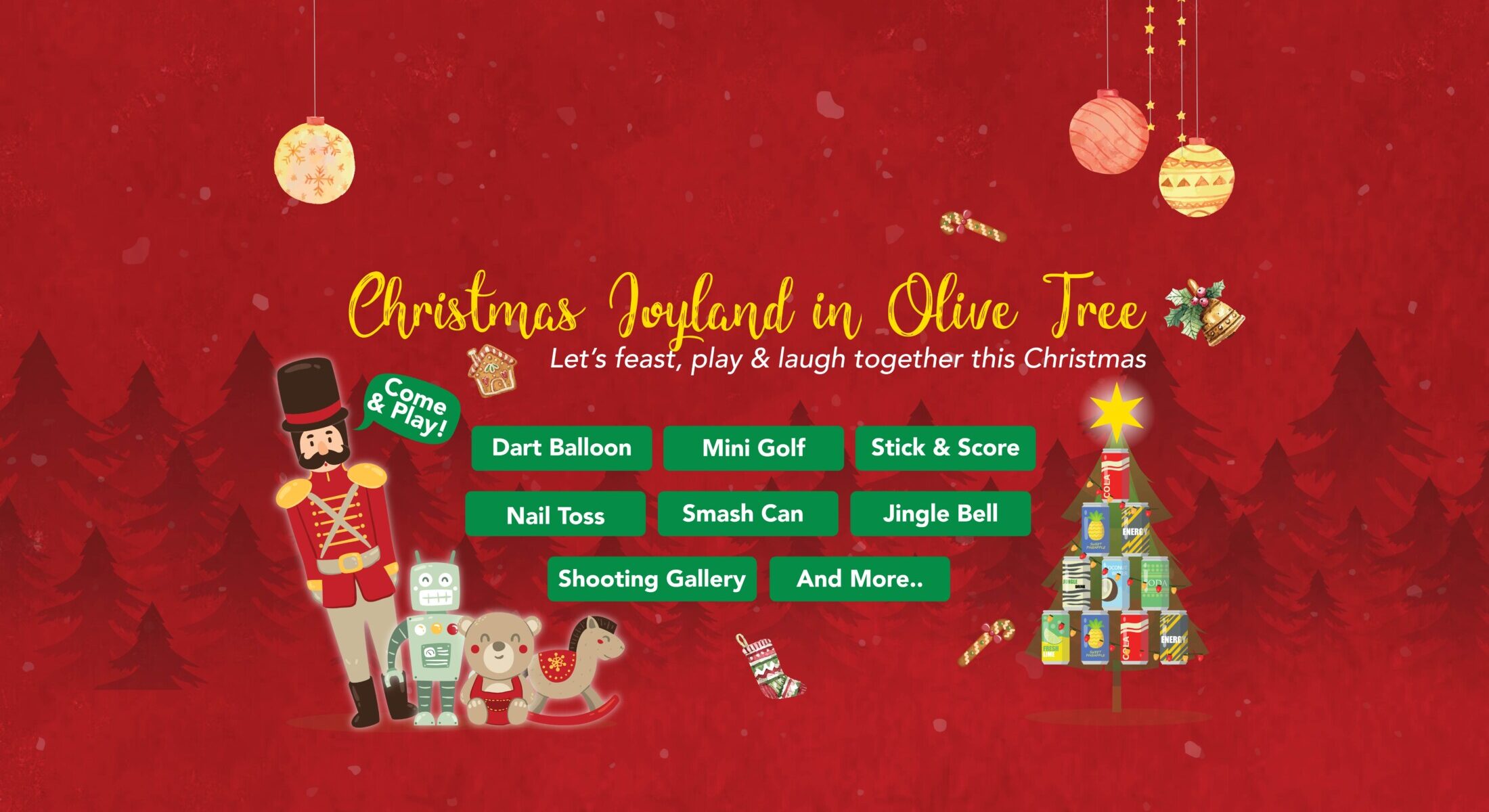 Experience Christmas Joyland at Olive Tree Hotel Penang — a festive family event featuring nostalgic games, live performances, and hands-on activities for all ages. Enjoy arts & crafts, Balloon Pop, Nail Toss, Smash Can, and more holiday fun in Penang.