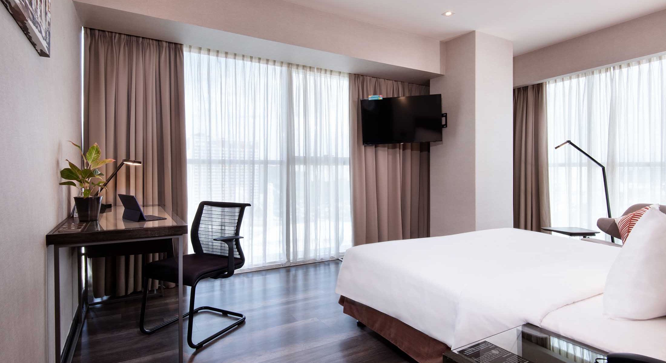 简洁、现代且时尚的豪华房是我们众多房型中的其中一类。房内空间宁静舒适,分别可配置 一张特大号床 或是 两张单人床,为客人提供了一个温馨的环境,是您急需的休憩之所。