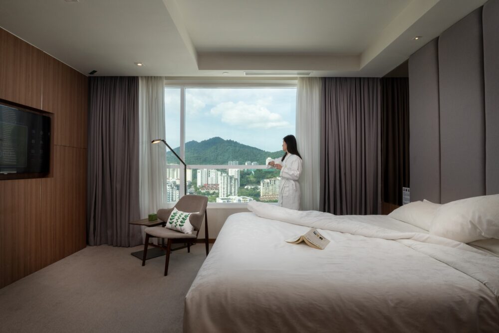 散发着纯粹的优雅和精致,我们的Olive豪华房拥有独特的布局,提供了对地平线的斜角视野。 此外,部分Olive豪华房配有残疾人友好设施,以为有需求的客户提供便利。